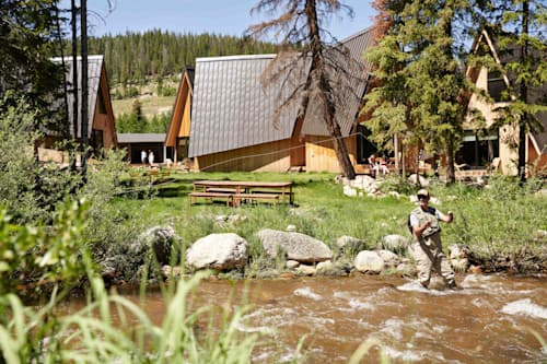 31 A-Frame cabins, a historic saloon, and a wood-fired restaurant in Winter Park, CO.